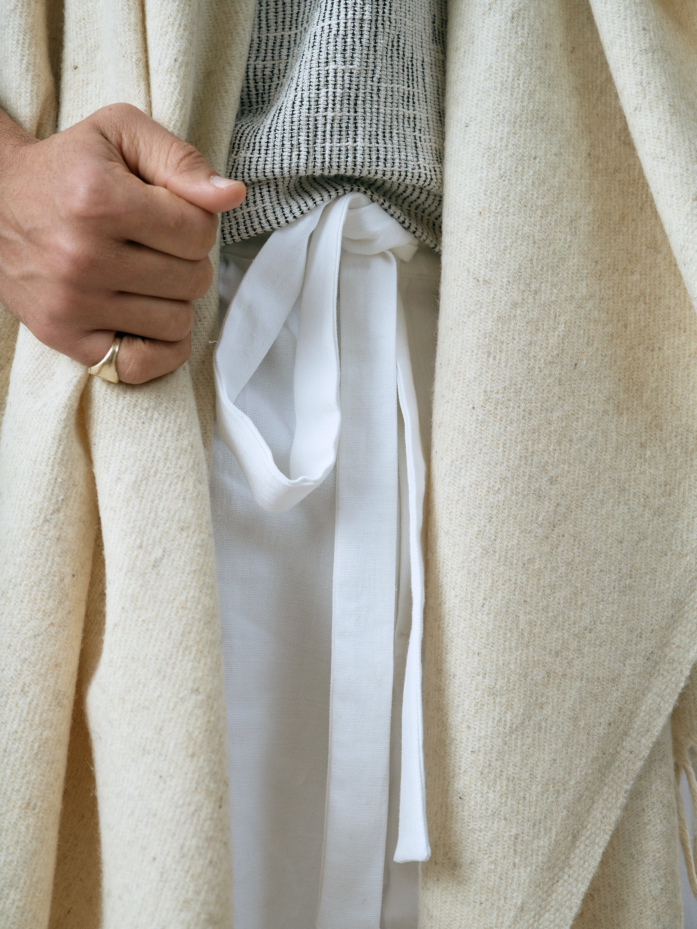 Laecken comes from the Dutch word ‘laken', a historic textile tied to my family name and to centuries of craftsmanship. Across the world, every culture has its own form of laken: wool, cotton, linen, hemp or silk translated into garments such as ponchos, kimonos, kaftans
